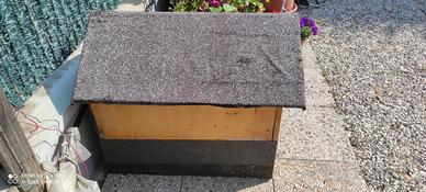 cuccia per cani taglia media in legno con tetto bitumato. ideale per ambiente esterno. misure esterne: lunghezza 74cm, larghezza 53cm, altezza 65cm
