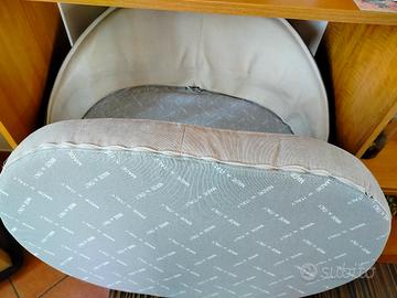 Cuccia per gatto o cane misura 70 × 52 made in Italy, cuscino ed interno beige, contorno grigio di fine cucitura trapuntata. Alta qualità. Completamente sfoderabile.