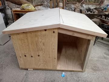 artigianale ed unica, coimbentata, adatta anche a basse temperature, per far stare il cane sempre al caldo anche in montagna. La cuccia è adatta per un cane grande, (36/40Kg). Ho utilizzato pannelli di multistroto marino superiore, 3cm di isolante in polietilene colorato ottimo isolante, per un totale di 6cm per lato. Il tetto è in 2 spioventi, La cuccia viene venduta come da foto e montata, solo sul posto, Palermo e dintorni. La cuccia viene fornita di piedi con le seguenti misure 30x20x13cm il 13 è l'altezza.