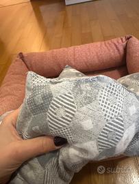 Cuccia rosa con cuscino grigio