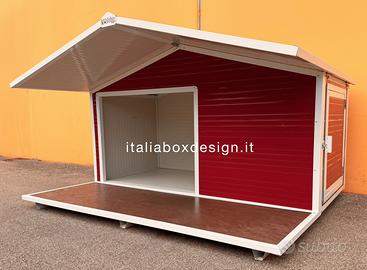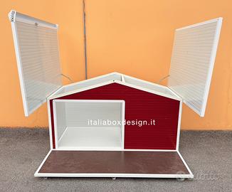 Casetta per il cani con pannelli sandwich colorazione rosso mattone e profili bianchi.