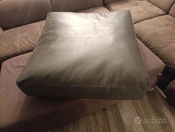 Cuscino da terra per cane, fatto artigianalmente in vera pelle liscia lavabile color grigio chiaro, totalmente sfoderabile , internamente 6 cm di piume d'oca ai lati e al centro 8 cm di Memory misura 80x85cm h 25cm.