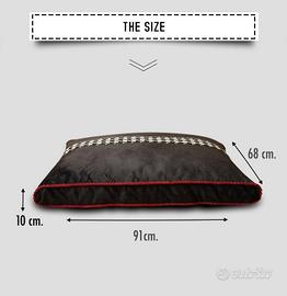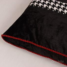 Cuscino per animali di taglia grande in morbido tessuto nero, con inserto e profilo in fantasia pied de poule bianco/nero e cordoncino rosso a contrasto, nuovo e disponibile in più pezzi. ��Dettagli articoloDimensioni: circa 91 × 68 × 10 cm, adatto per cani di taglia media/grande o più animali piccoli che dormono insieme. ��Imbottitura soffice in fibra sintetica che garantisce buon comfort e isolamento dal pavimento. ��Rivestimento in tessuto effetto velluto, piacevole al tatto e facile da spostare su divano, pavimento o dentro la cuccia rigida. ��Condizioni e disponibilitàCuscino nuovo, mai utilizzato, senza difetti visibili né segni di usura. ��Disponibili più pezzi dello stesso modello; per acquisti multipli scrivi in chat così posso organizzare un’unica spedizione.
