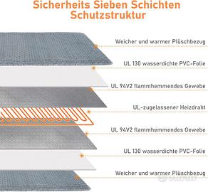 Design di sicurezza unico: per evitare che i cani mordano la linea e ricevano scosse elettriche, la linea è avvolta da una guaina a spirale. La struttura protettiva a 7 strati con filo riscaldante certificato UL protegge gli animali domestici dalle ustioni. La custodia in morbido PVC ha una funzione idrorepellente e ignifuga. Un sensore di temperatura intelligente integrato nel cuscino riscaldante impedisce il surriscaldamento e protegge gli animali domestici. Non lasciare che i tuoi animali domestici si trovino sul cuscino riscaldante per animali domestici senza rivestimento in peluche
