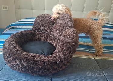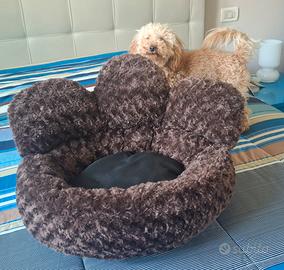 Vendo cuscino/cuccia marrone a forma di zampa per cane, marca Luna & Teo in ottimo stato, usato un mese e in condizioni perfette. Misura per cani di taglia piccola o cuccioli. Cuccia morbida e facile da trasportare.