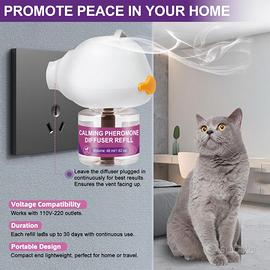 🐱 Diffusore di feromoni per gatti – Il set comprende 1 diffusore da presa e 3 flaconi di ricarica da 48 ml ciascuno. Pensato per favorire un ambiente più tranquillo in casa e aiutare a ridurre situazioni di stress nel gatto.