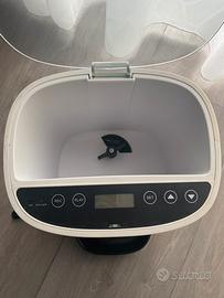 Questo distributore di cibo é programmabile per diversi orari e si puo decidere anche la quantita di cibo da erogare. Si puo registrare la propria voce che suona all’orario programmato per richiamare il vostro peloso nel mometo dell’erogazione.