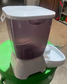 Vendo distributore automatico di cibo secco Cat Mate C3000. L'apparecchio è stato usato pochissimo ed è in condizioni estetiche e funzionali eccellenti, praticamente pari al nuovo. • Capacità: Contenitore da 3 kg di croccantini. • Programmazione: Fino a 3 pasti al giorno con quantità personalizzabili (minimo 10g). • Funzioni extra: Modalità "pasto frequente" (per gatti con esigenze dietetiche) e tasto per erogazione manuale immediata. • Affidabilità: Funziona a batterie (non incluse), garantendo il pasto anche in caso di blackout. • Istruzioni incluse: Fondamentali per una corretta e facile programmazione dei timer. Senza scatola originale. H35cm/larghezza max 33cm alla base.