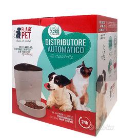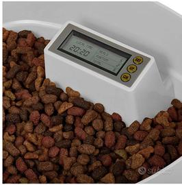 Distributore di crocchette automatico per cani o gatti • Programmabile fino a sei pasti al giorno. • Quantità di cibo regolabile per ogni porzione. • Capacità serbatoio di 2,2 kg di crocchette. • Funziona sia a batterie, che con cavo alimentazione • Display LCD integrato per una programmazione semplice. • Contenitore estraibile e lavabile. • Adatto per uso interno ed esterno