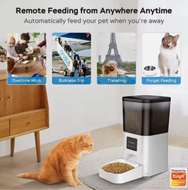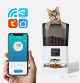 Distributore automatico di cibo - mangiatoia - ciotola automatica per cani e gatti WIFI PST Tuya smart pet feeder 4 LT. Gestione tramite app Tuya Smart Life. Regolazione della porzione da rilasciare. Avvisi reminder programmabili in app per ricordarsi. Funziona con wifi 2.4G. Non è compatibile col 5G. Il distributore ha un serbatoio di 4 litri e Possibilità di impostare timer rilascio crocchette o con interruttore. Solo per uso interno, si sconsiglia di lasciarlo sotto la pioggia. Diametro crocchette da 2 a 10 mm, crocchette con diversa dimensione potrebbero bloccare l'elica che rilascia il cibo. Doppia alimentazione a batteria ed elettrico. In allegato all'annuncio Manuale Italiano e Inglese. Acquisto da azienda italiana con feedback 100% positivi, supporto post vendita garantito.