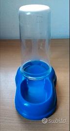 Ferplast Azimut 600 Distributore per Cibo secco o Acqua per gatti e piccoli cani. Robusta Plastica, Serbatoio Trasparente con Scala Graduata, Fondo Antiscivolo. Dispenser da 600 ML Dimensioni: 12.5 X 19 X H 19,5 cm colore: Blu, trasparente. Dotato di gommini sottostanti antiscivolamento e scala graduata sul serbatoio (400-500-600 ML). Comprato per un gatto ma mai usato per contemporaneo acquisto di fontanella. L'uso è semplice: basta riempire il serbatoio fino a 600 ml e montare la base sopra tenendo il tutto capovolto dopodichè, assicurandosi di aver fissato bene la base ad incastro, lentamente capovolgere il tutto nella giusta posizione. Se ad esempio verrà utilizzato per l'acqua si riempirà la vaschetta blu e man mano che verrà consumata, automaticamente scenderà nuova acqua.