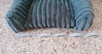 Rivestimento in soffice pelo sintetico a costine larghe di colore grigio, fondo antiscivolo ed imbottitura morbida ed accogliente in gommapiuma a fiocchi.