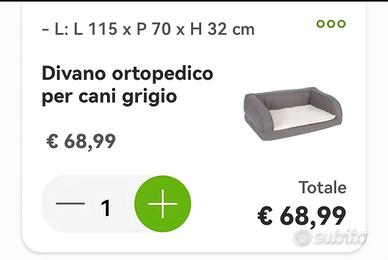 vendo divano per cani di media- grande taglia. praticamente mai usato. imbottitura in memory , sfoderabile e lavabile in lavatrice.