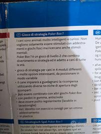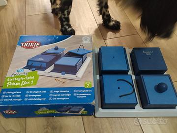 Gioco di strategia per cani Gioco d'intelligenza Trixie Dog Activity Poker Box per cani svegli e curiosi, con 4 scatole con diversi meccanismi di apertura, riempibili con snack, in plastica con piedini antiscivolo. I cani sono animali intelligenti e curiosi che oltre al movimento necessitano di stimoli continui, anche di tipo mentale. I prodotti firmati Dog-Activity sono stati appositamente sviluppati per il gioco interattivo tra cane e padrone. Il Dog Activity Poker Box è l'occupazione ideale per cani già allenati. Il compito del vostro amico quattro zampe sarà quello di aprire i quattro cassetti alla ricerca della ricompensa celata al loro interno. Considerato che questi ultimi si aprono in 4 modi diversi al cane sarà richiesta molta concentrazione e ingegno. Il gioco d'intelligenza Trixie Dog Activity Poker Box è lavabile in lavastoviglie. Prodotto alternativo ideale per offrire al proprio cane un passatempo intelligente! Inoltre, all’interno della confezione potrete trovare un mini manuale istruttivo con tanti esercizi e consigli utili per un allenamento vario e divertente.