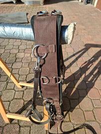 Fascione da addestramento per cavalli con redini laterali con anello in gomma. Colore marrone, usato pochissimo