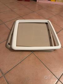 Vendo ferma traversina 60x60 cm in ottime condizioni. Realizzata in materiale plastico resistente, ideale per bloccare traversine assorbenti, tappetini igienici o protezioni per animali domestici. Bordo rialzato per evitare spostamenti e mantenere la traversina ben ferma. Colore bianco/crema, facile da pulire con un panno umido. Perfetta per cani, cuccioli o per uso domestico. Dimensioni: 60 x 60 cm