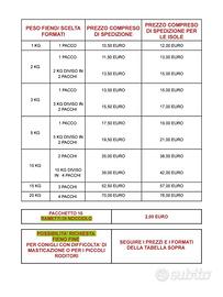 1 kg € 3,00 / 2 kg € 4,00 / 3 kg € 5,00 / 4 kg € 6,00 / 5 kg € 7,00 / 10 kg € 14,00 …..ecc ecc (disponibile e ordinabile qualsiasi tipo di quantità per il ritiro in cascina)