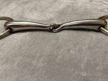 Come da titolo sto vendendo un filetto per cavalli di dimensioni 13,5 cm di lunghezza. Gli anelli laterali sono di dimensione normali. Questo filetto infatti è il filetto più diffuso in commercio. Il cannone del filetto è lungo 13,5 cm e è vuoto