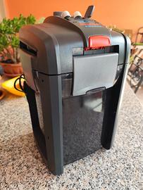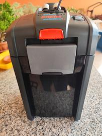Filtro esterno per acquario molto capiente con 4 cestelli nei quali si può mettere ogni genere di cose per la proliferazione batterica e materiale come resine, carboni ...