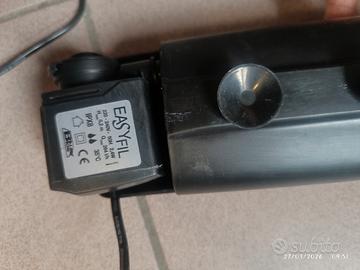 un filtro dotato di ventosa e gancetto, con getto a cascata e vano per cannolicchi, carbone attivo e lana
