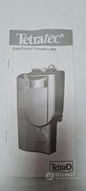 Vendo filtro Tetratec EasyCrystal Box 600 completo di accessori essenziali per garantire acqua sempre limpida e un ambiente ottimale per i tuoi pesci. Perfettamente funzionante e in ottime condizioni!