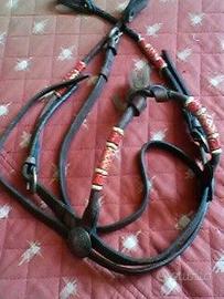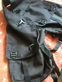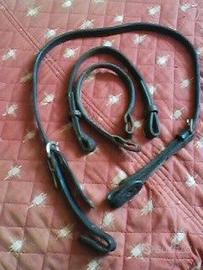 FINIMENTI in cuoio, e BISACCIA Per cavallo, pony, asinello... Alcuni finimenti in cuoio con un paio di raccordi borchiati più una corda morbida mt. 2,40 Bisaccia di struttura morbida in materiale sintetico robusto. lunghezza totale cm. 110, larghezza 24 le due tasche: altezza cm. 28, larghe 24, prof. 9 -+ In totale 7 pezzi, usati, come anche da foto. eur 28 tratt. Possibili abbinamenti e sconti con acquisti sugli altri miei annunci. Per esempio: SCONTO "3 x 2" Visione e consegna gratuita in Torino, oppure spedizione.