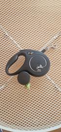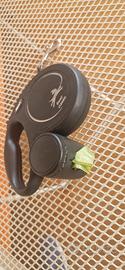 Guinzaglio allungabile Flexi New Classic, per cani di taglia media (25kg), con una lunghezza massima di 5mt. Il prodotto si presenta in ottimo stato ed è dotato anche dell'accessorio per contenere le bustine raccogli bisogni. Sulla parte posteriore è presente un tasto per bloccare il cordino e sbloccarlo.