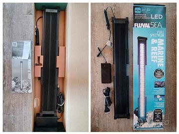 Plafoniera LED per acquari marini della serie Marine 3.0, progettata per vasche di dimensioni che vanno circa da 61 a 85 cm, con un'illuminazione full-spectrum a 25000K che integra LED blu attinici per la crescita dei coralli e la resa dei colori.