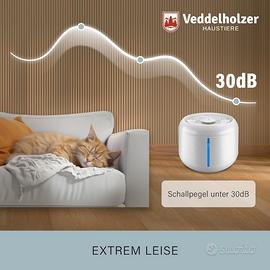 Estremamente silenzioso: la pompa dell'acqua integrata nella fontana per gatti si distingue per un consumo energetico estremamente basso e una modalità di funzionamento molto silenziosa. Il livello sonoro è inferiore a 30 dB, quindi la fontana per gatti può essere posizionata anche in camera da letto. ✅ Acqua pulita: il filtro a 4 strati in carbone attivo e resina agli ioni rimuove sporco, peli e sporco più piccolo. Inoltre filtra odori, cloro e ammorbidisce l'acqua. Il filtro può essere facilmente rimosso e rimosso per mantenere la qualità dell'acqua sempre fresca e pulita. Facile da pulire: grazie al sistema intelligente a incastro, la fontana per gatti Veddelholzer può essere montata e smontata in pochi passaggi, in modo che ogni punto possa essere facilmente pulito. Il serbatoio dell'acqua rimovibile consente un facile riempimento con acqua. Innovativo ed elegante: il design innovativo ed elegante si adatta a ogni casa ed è una vera attrazione. Con una capacità di 2,5 litri, la fontana per gatti non deve essere riempita per 10 giorni.