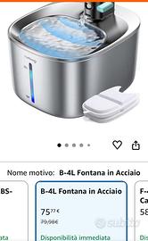 Fontanella in acciaio marca FeelNeedy 4 litri con carica usb ( durata circa 15gg) completa di accessori e filtro nuovo. Perfettamente funzionante solo qualche macchia di calcare come visibile in foto.