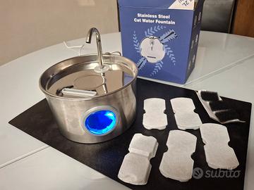 vendo fontanella per gatti in acciaio inox di 2.6 litri con 6 filtri e 4 spugne .