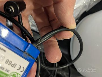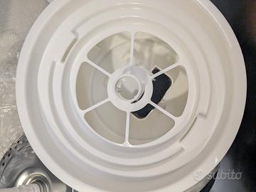 Fontanella per gatti con luce blu, perfettamente funzionante, con 14 filtri. La pompa interna ha uno dei fili che è leggermente rovinato, suggerisco di cambiarlo per una questione di sicurezza, si trovano in vendita per pochi euro su Amazon o nei negozi di articoli per acquari.