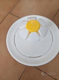 Fontanella per gatti dal design a forma di fiore, con un allegro centro giallo.