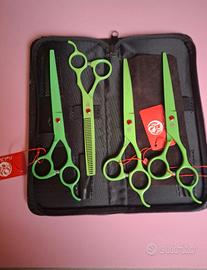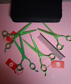 forbici toelettatura cane purple dragon col verde pz 4 con custodia con pettine