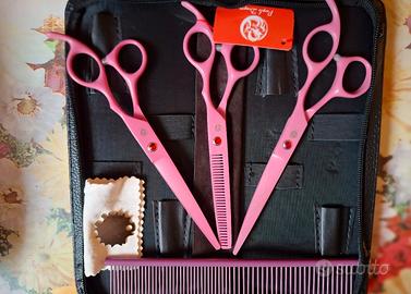 forbici toelettatura cane col rosa pz 3 compreso pettine e custodia