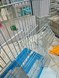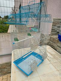 Vendo bellissima gabbia per uccelli con particolare design a pagoda, ideale per canarini, cocorite, inseparabili o piccoli esotici. La gabbia si sviluppa in altezza, offrendo molto spazio ai volatili. Caratteristiche principali: Dimensioni:35 cm (larghezza) x 70 cm (altezza) x 30 cm (profondità). Tetto apribile:La parte superiore si apre diventando un pratico trespolo esterno (balconata), ideale per chi lascia gli uccellini liberi in casa. Design elegante:Struttura con sbarre bianche e profili azzurri, esteticamente molto curata. Accessori inclusi:4 mangiatoie esterne, beverino, altalena e posatoi originali. Facile pulizia:Fondo in plastica azzurra con vassoio estraibile per una manutenzione rapida. La gabbia è in ottime condizioni, pulita e igienizzata. Pronta all'uso. Prezzo:40€ Consegna:Ritiro a mano a [Tuo Comune] o spedizione tramite TuttoSubito.