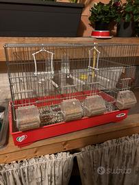Gabbia con separatore rimovibile 4 mangiatoie 2 abbeveratoi 2 altalene 2 portauovo in buone condizioni