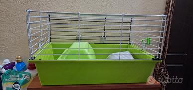 vendo causa inutilizzo, gabbia per animali con riparo e mangiatoia esterna con kit abbeveratoio. ottimo stato, praticamente perfetta tranne due macchie indelebili sul fondo ma ininfluente è ineeti. Le misure sono 58×38 h.33