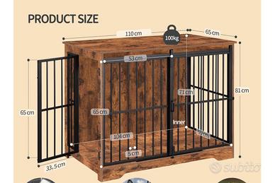 Gabbia arredo per cani Nuova e già montata Vendo per errore acquisto misure Misure esterne 65x110x81 Misure interne 59x104x71 Solo ritiro a mano