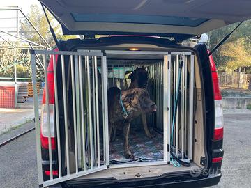 É dimensionata su misura per Mercedes Viano/Vito, ma può essere usata anche in altri furgoni o come gabbia fuori dai veicoli.