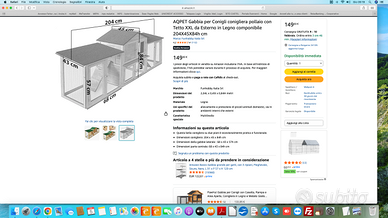 GABBIA XXL per animali vari adatta anche per esterni, perfette condizioni, smontata con istruzioni x montaggio