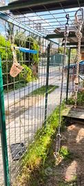 Vendo Gabbia per giardino. Per cani di grossa taglia. (a prova di lupo Cecoslovacco) 😂 Dimensioni: Lunghezza/profondità 295 cm Larghezza 120 cm Altezza 175 cm 6,2 m3 La gabbia va smontata (dissaldata o tagliata con il flessibile per poi essere risaldata). lPer il trasporto serve furgone o camioncino, perché le reti elettrosaldate sono ingombranti.