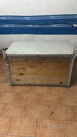 Gabbia con rete anti topo misura 75 x 50 x 40 con 3 posatoi interni 2 mangiatoie esterne 2 beverini esterni dietro in perline legno