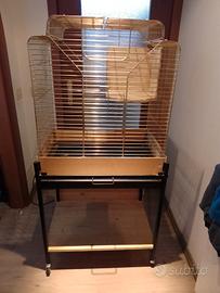 gabbia ottima per uccelli o roditori,con rotelle ,apertura frontale superiore,sono stati inseriti supporti in legno che possono essere tolti