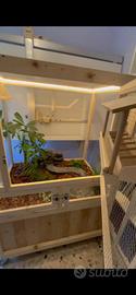 Vendo gabbia costruita dal sottoscritto con molteplici dettagli e particolari, è grande 70x90x150h. i primi 50cm nella base è chiusa e sopra in rete. E' dotata di ruote per muoverla facilmente in ogni momento. Ha dei led su tutto il perimetro per illuminarla e al suo interno c'è una cascata,(sempre costruita da me) con un laghetto e nascosto su un lato c è un' antina dove si può accedere al serbatoio dell'acqua e alla pompa per eventuale assistenza. è dotata di una porta principale sul davanti con al di sotto altre due antine per pulire al meglio il fondo. sul lato invece ha altre due antine dove è possibile accedere alla gabbia per ogni necessità. E' fatta di legno massello, un legno chiaro che in questo momento è lasciato naturale ma può essere benissimo dipinto per avere un altro look. Era stata progettata per tenere una coppia di volatili ma è possibile con qualche piccola modifica(posso farle io su commissione) di farla diventare una gabbia per ogni animale voi abbiate, come roditori di ogni genere. Non è mai stata usata, è stata costruita e mai messa in utilizzo. Me ne separo perchè ho cambiato tipologia di animali e non ho più queste necessità. Per foto/video contattatemi in privato senza problemi.