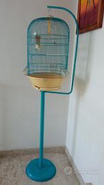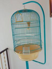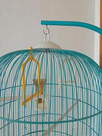 Vendo gabbia colore turchese per uccelli vari ,con piede alto un metro e mezzo, con vaschette estraibile per la pulizia.