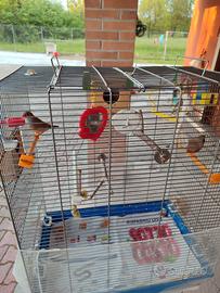 gabbia grande, completa di piedistallo, altalena, stecche, nido, etc etc.