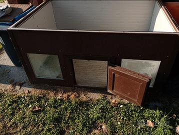 Ottimo e grande cassone coibentato, realizzato su misura da ditta artigianale, per piccoli animali che possono/devono stare all'aperto anche nella stagione fredda. La parte superiore si apre totalmente per favorire la cura degli animali alloggiati e la pulizia del contenitore. La comoda apertura frontale consente di lasciare libero accesso agli animali o di rinchiuderli. Misure esterne cm. 147x103x75h. Misure interne cm. 138x93x66h. Misura luce apertura frontale cm. 35x35.
