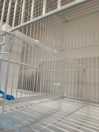 Gabbia cova 2gr 58 cm plastificata,laterali in plastica misure 58 lunghezza 30 profondità 39 altezza gabbia dotata di divisorio in rete,4 mangiatoie,2 beverini,cassetto e griglia fondo,4 sportelli frontali.Articolo nuovo mai usato.