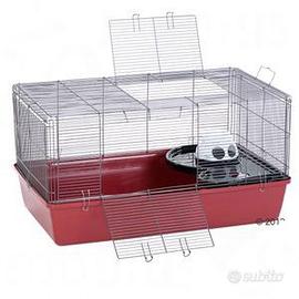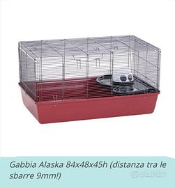 Gabbia Alaska per criceto o piccoli roditori con 2 grandi aperture,superiore e frontale con blocco,maniglie per il trasporto e fondo molto alto per permettere al piccolo roditore di scavare tane e gallerie. Possiede gli accessori in dotazione: - casetta a forma di orso polare - ripiano - scivolo aggiungo: - beverino - mangiatoia - vaschetta per bagno di sabbia - casetta labirinto in legno naturale - tunnel grande in legno naturale di 23 cm - ruota a disco in legno (se non piace posso fornire un'altra). La gabbia è attualmente smontata per facilitarne il trasporto. Solo ritiro,zona Aurelio 00167. Non spedisco.